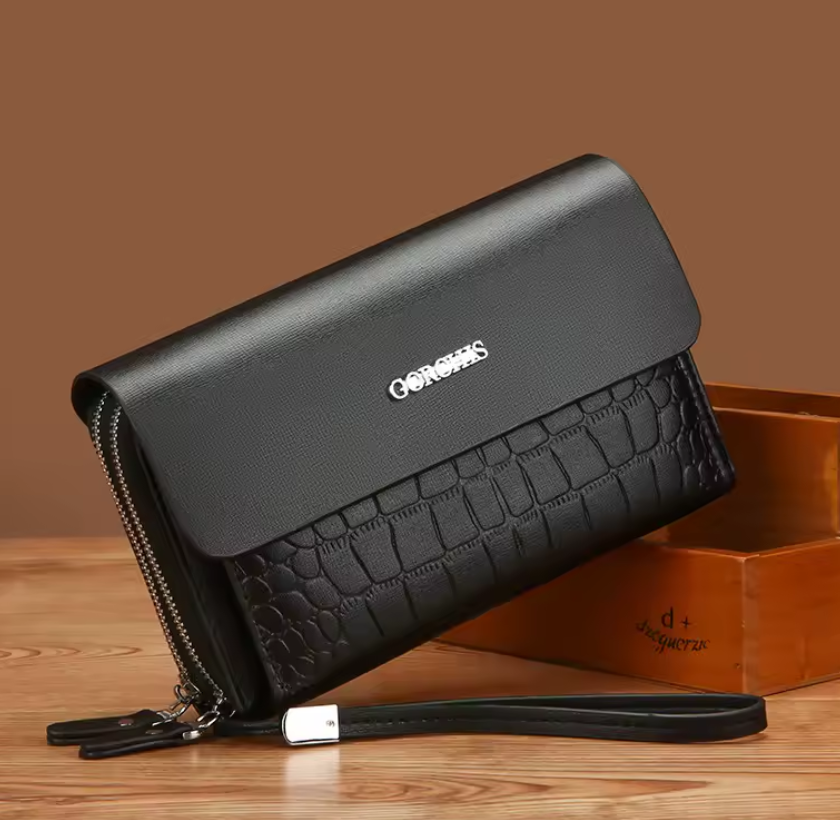 Ce sac à main pour hommes allie style et fonctionnalité. Son design moderne et raffiné fait immédiatement impression et complète parfaitement votre tenue, que ce soit pour le bureau, une sortie ou un voyage. Il est conçu pour l’homme qui veut rester chic sans effort.